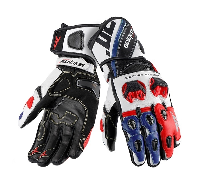 Manusi barbati racing vara Seventy model SD-R12 negru/rosu/albastru Descriere: • manusi racing; • culoare: negru/rosu/albastru; • omologare CE. Compozitie si descriere: • gama de manusi coneputa pentru competitii, de catre Seventy Degrees; • manusi 100% ventilate; • compozitie: - piele bovina; - PVC; • insertii din Kevlar pe lateralele palmelor pentru o rezistenta mai mare la frecare, in caz de accident (pentru frecare abraziva); • manusi fabricate din materiale concepute special pentru o ventilare optima; • flexibilitate la incheieturi si degete pentru un confort sporit; • protectii din carbon la incheieturi si degete; • protectii PVC ventilate; • 2 sisteme de inchidere ale manusii: - 1 inchidere in spatele incheieturii; - 1 inchidere in interiorul incheieturii; • exterior manusa: - partea exterioara: piele de bovina - fourway; rezistenta crescuta a materialului (Clarino); • insertii din Kevlar pe lateralele palmelor pentru o rezistenta mai mare la frecare, in caz de accident (pentru frecare abraziva); • interior manusa: - interiorul nu are protectie termica.