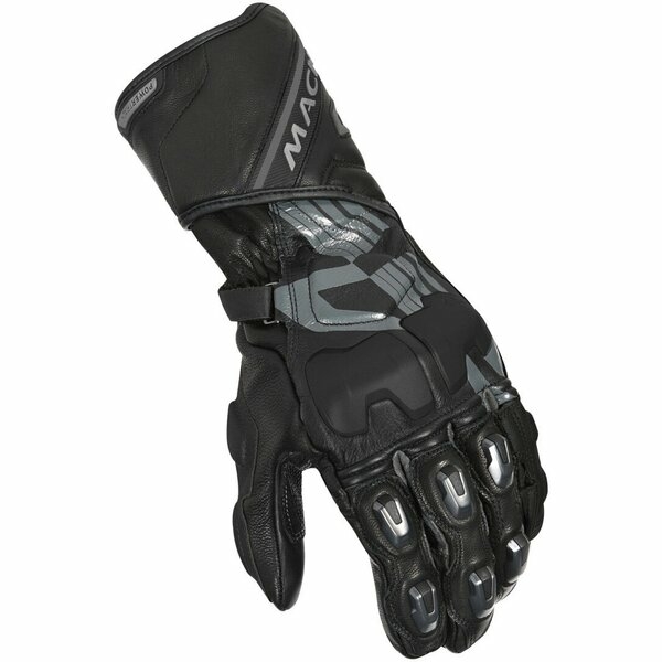 Mănușile moto Powertrack de la Macna sunt realizate dintr-o combinație de piele de bovină, piele de capră și piele de cangur. Degetul mare și arătătorul sunt realizate dintr-un singur panou, pentru a reduce numărul de cusături și punctele de presiune, oferind totodată un aspect neted, fără cute. O punte solidă între degetul inelar și cel mic previne dislocările și alte accidentări. Protectorul flexibil, dar rezistent, din TPU de la manșetă este susținut de Temperfoam și funcționează atât ca slider, cât și ca element de absorbție a impactului. În plus, mănușile sunt echipate cu protectoare R.I.S.C.™ Armax pentru articulații, degete și palmă, pentru un plus de siguranță.