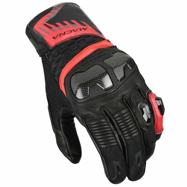 The Chizu motorcycle glove consists of goat leather, cowhide and 3D mesh fabric for enhanced breathability. An extra layer of leather is fitted at the palm to raise abrasion resistance, as has been done at the pinkie and ring finger to reinforce them. The glove is fitted with a comfortable tricot liner. The absence of a waterproof membrane prevents you from sweating in warm riding conditions. A solid, preformed carbon protector is attached to the knuckles, which absorbs impacts and is abrasion-resistant. The pinkie and ring finger feature Macna's latest protection called Armax™. This construction leaves out the need of seams – what is actually the weakest link in the construction – in critical areas, greatly increasing your safety. EVA padding can be found at the palm and thumb. Chizu features the Ergothumb™ construction, meaning the thumb and index finger are made of one and the same panel of fabric. This reduces seams and pressure points whilst also giving a wrinkle-free look. Thanks to the Touch Tip, you'll be able to operate touch screens without taking your gloves off.