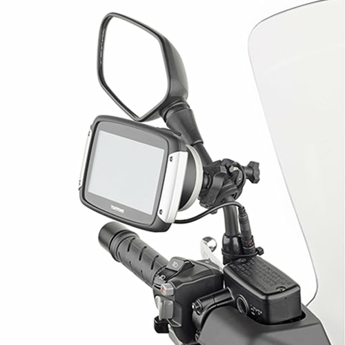 Suport universal pentru a monta GPS Tom Tom Rider (40, 400, 410, II) pe ghidon sau pe tilpina unei oglinzi retrovizoare. Compatibil cu ghidon tubular cu diametru de la 8 pana la 35mm