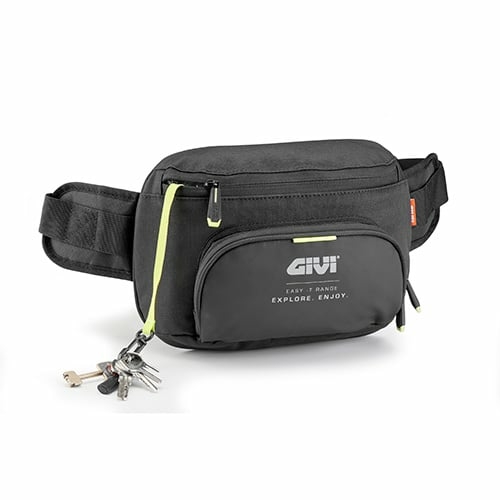 Geanta de talie reglabila. Materiale: , Poliester 600D si poliester laminat PU , Insertii din PU si elemente reflectorizante galbene fluorescente , Material reflectorizant negru mat Toate materialele sunt realizate conform regulamentului REACH. Echipament: , Buzunar interior , Buzunar frontal , Buzunarul din spate , Imprimeuri reflectorizante