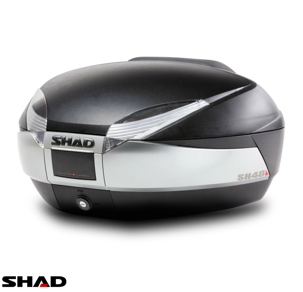 Cutie portbagaj (topcase) Shad model SH48 culoare: negru/titanium (volum: 48 litri) – include placa de montaj