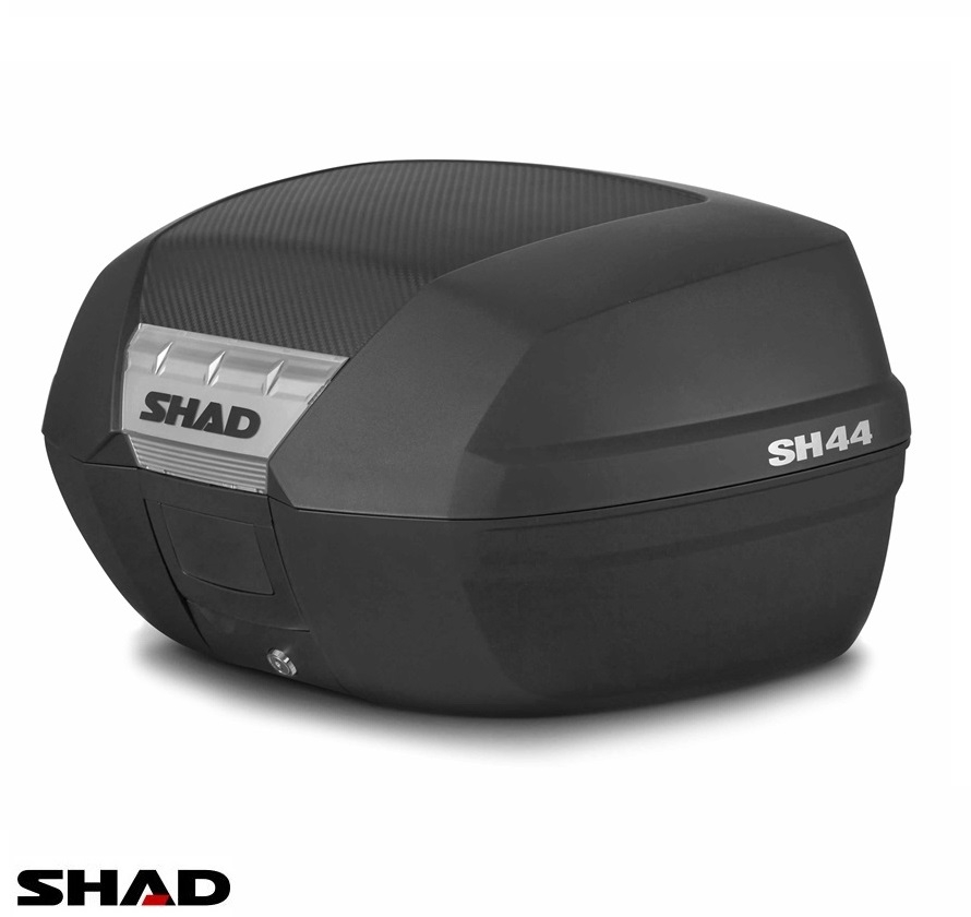 Cutie portbagaj (topcase) Shad model SH44 culoare: negru (volum: 44 litri) – include placa de montaj Caracteristici: • culoare: negru; • volum cutie portbagaj: 44 litri (pot fi depozitate 2 casti integrale); • realizat din material plastic rezistent la impact; • rezistenta la apa; • cutia include placa de montare; • cutie detasabila si blocabila; • masa maxima: 6 kg; • dimensiuni: - lungime: 43.5 cm; - latime: 55 cm; - inaltime: 31.5 cm.