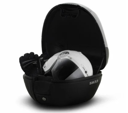 Cutie portbagaj (topcase) Shad model SH33 culoare: negru (volum: 33 litri) – include placa de montaj Caracteristici: • culoare: negru; • volum cutie portbagaj: 33 litri (o casca integrala + manusi); • realizat din material plastic rezistent la impact; • rezistenta la apa; • cutia include placa de montare; • cutie detasabila si blocabila; • dimensiuni: - lungime: 42 cm; - latime: 43 cm; - inaltime: 31 cm.