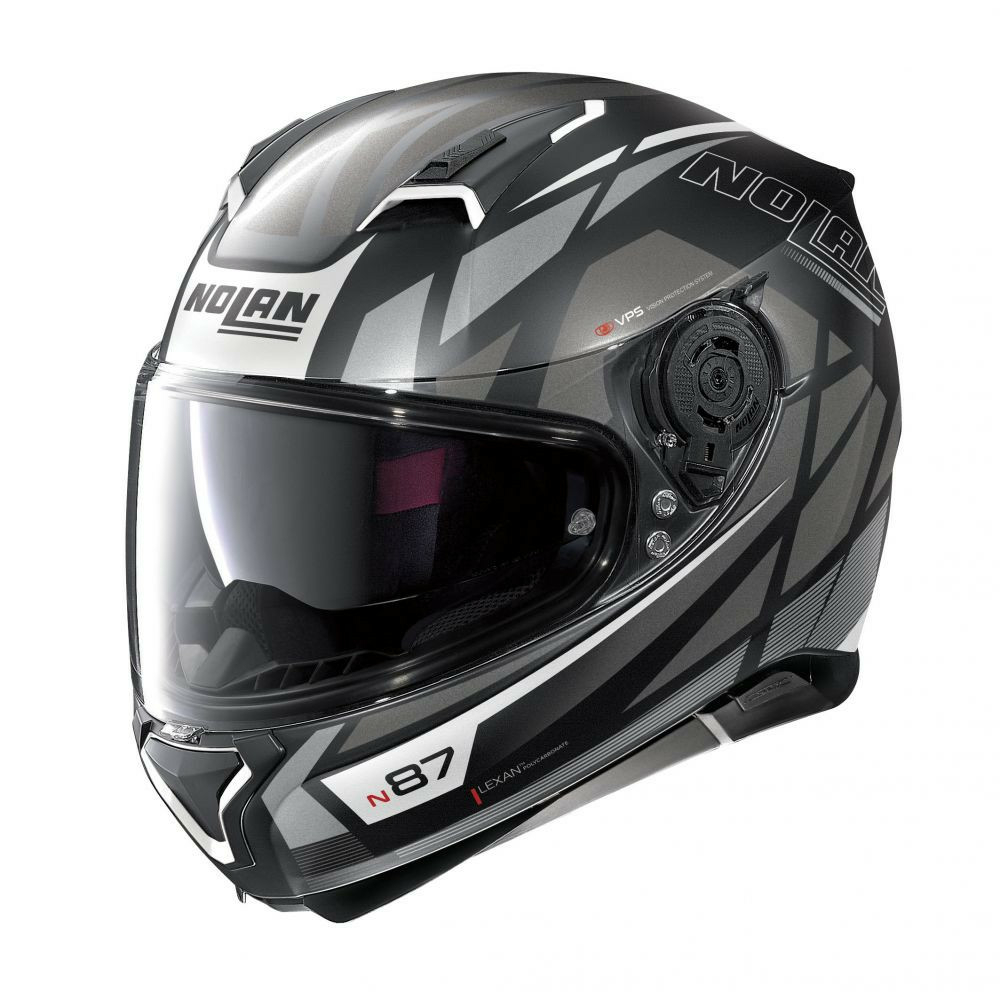 This is Nolan’s top of the range road full-face helmet. It is characterised by a sporty yet elegant design, rich with technical characteristics and a wide range of colours and graphics. Its compact size (thanks to the availability of two outer shell sizes), ultrawide visor, innovative tilting-functionality visor mechanism, VPS sunscreen (which can be adjusted to various positions), AirBooster Technology upper ventilation system, double lever Microlock2retention system with micrometric adjustment, innovative Clima Comfort inner padding (with micro-perforated fabrics) and set up for the N-Com communication system make the N87 an already very-much-appreciated product among the most demanding of motorbike tourists.