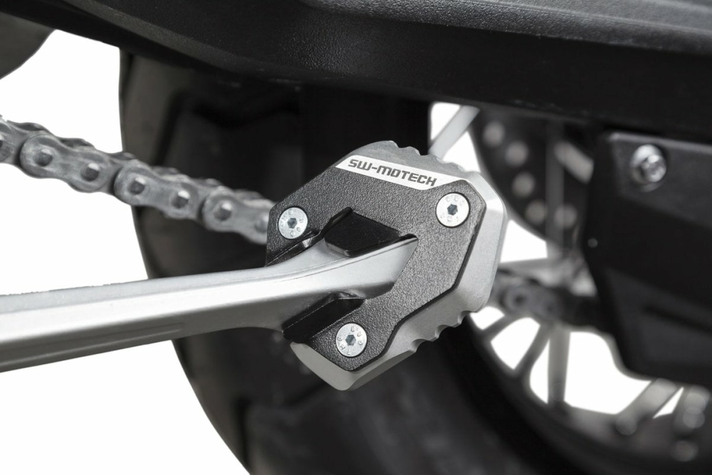 Extensie talpa cric lateral Aceasta extensie durabila a cricului lateral are o suprafata mare de contact pentru o stabilitate sporita, chiar si pe teren neuniform si sol moale. Atunci cand dezvoltam noi produse, prioritatile noastre sunt o potrivire precisa si o utilizare usoara in timpul calatoriei de zi cu zi. Partea superioara profilata a extensiei usureaza plierea standului. Cea mai buna potrivire si o aderenta mai sigura, garantata: extensia este din aliaj de aluminiu anodizat si consola de montare din otel inoxidabil prelucrate CNC. Primesti la livrare: 1 x Extensie pentru cric lateral Instructiuni de montare Material de montare Detalii: Material: aluminiu otel inoxidabil Suprafata: anodizata Culoare: negru argintiu