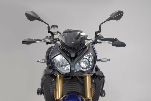 Protectii manete cu deflector de vant Aspectul sportiv este perfect pentru Naked Bikes si Sports Tourers. Protectiile impotriva vantului sunt realizate din plastic negru, iar montarea pe protectiile pentru manete este usoara folosind cele doua suruburi incluse la livrare. Aceste frumoase protectii pentru manete, realizate din aluminiu anodizat, sunt in acelasi timp un produs de protectie si un punct de atractie. Initial utilizate in curse, ele sunt accesorii atractive pentru motociclistul preocupat de stil. Acestea sunt montate pe partea laterala a ghidonului, iar suruburile specifice pentru montare pe motocicleta sunt incluse la livrare. Se ataseaza la capatul ghidonului Piese de inalta calitate, forjate cu zone frezate Protectie pentru maneta de frana si maneta de ambreiaj Protectie suplimentara impotriva caderilor Materialul de montare specific pentru motocicleta este inclus in livrare Include: 2 x protectie pentru manete stanga si dreapta 2 x Protectie impotriva vantului pentru protectiile manetelor, stanga si dreapta Instructiuni de montare Material de montare Detalii: Material: Aluminiu Plastic Suprafata: anodizata Culoare: negru Greutate totala: aprox. 0,9 kg