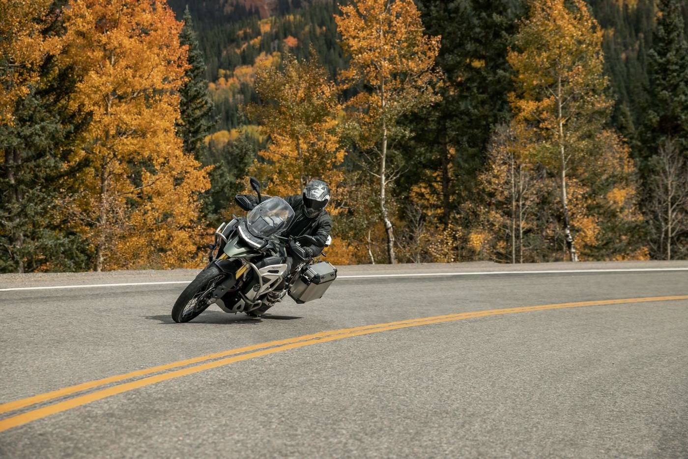 - ALTE DETALII: motor cu tehnologie T-Plane, basculă Tri-Link, sistem control al tracțiunii și sistem ABS optimizate pentru viraje, unitate IMU, sistem de control al vitezei de croazieră Cruise Control, sistemul de schimbare a treptelor Triumph Shift Assist, sistem de asistență pentru pornirea din rampă Hill Hold Control, sistem de monitorizare a presiunii din pneuri Tyre Pressure Monitoring System, sistem Adaptive Cornering Lighting pentru vizibilitate sporită în viraje, suspensii premium semi-active Showa, sistem franare Brembo, ambreiaj asistat cu alunecare controlată, 6 Riding Modes, jante cu spițe, anvelope tubeless, șa încălzită și reglabilă pe înălțime 875-895 mm, parbiz reglabil, bord multi-functional cu afisaj TFT color 7 inch cu My Triumph Connectivity System, faruri și iluminare completă cu tehnologie LED, proiectoare auxiliare cu LED, bare de protecție rezervor de combustibil pornire fără cheie, protecții mâini, priză USB, cric central, mânere încălzite, scut de protecție baie de ulei, bare de protecție motor