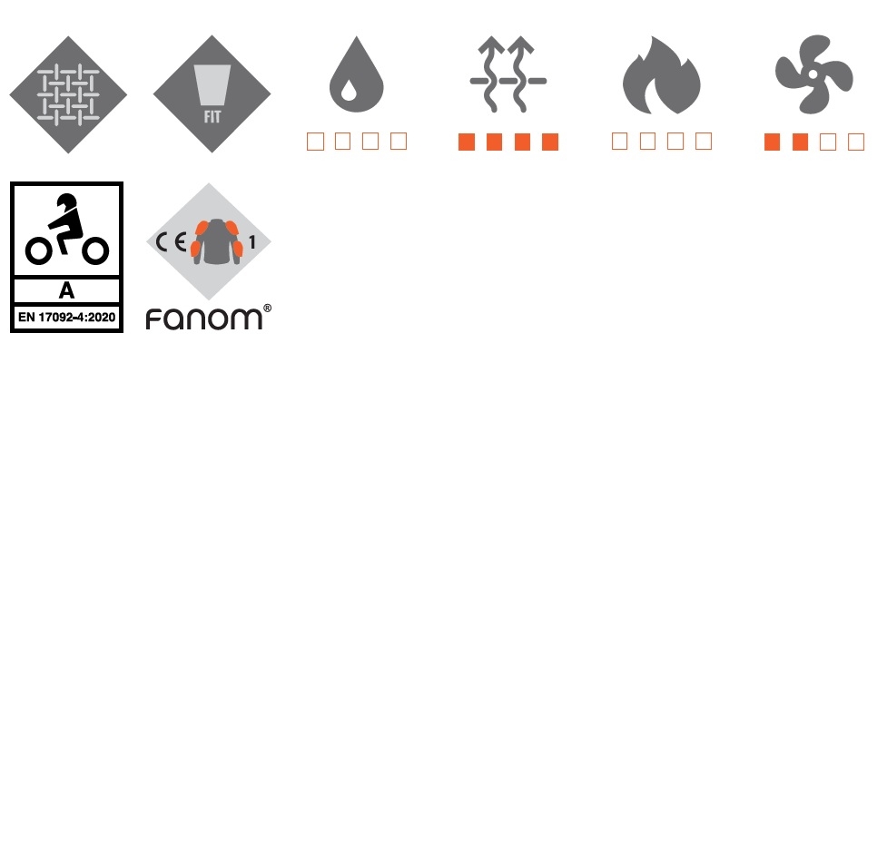 • protectii: protectii coate si umeri Level 1 (umeri: Fanom, tip A, level 1; coate: Fanom, tip A, level 1;