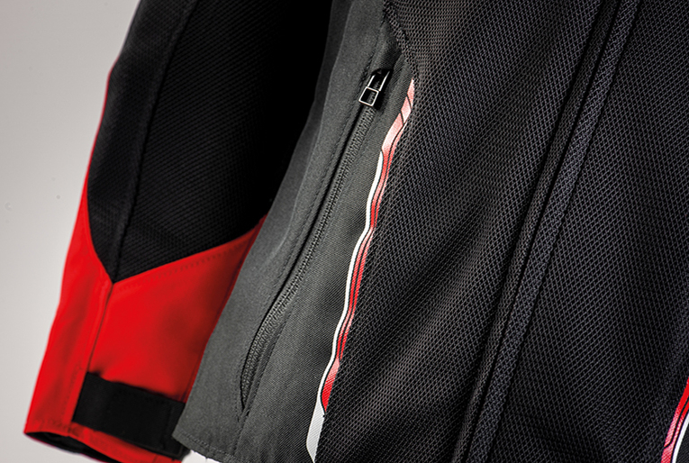 Flux de aer excelent datorită panourilor din plasă de pe burtă, mâneci, umeri și spate. Secretul capacității sale excelente de flux de aer se află în interior. Căptușeala fixă din plasă este echipată cu panouri din plasă 3D (pe guler, clapeta centrală, partea inferioară a spatelui), iar buzunarele pentru protecții sunt, de asemenea, fabricate din plasă 3D.