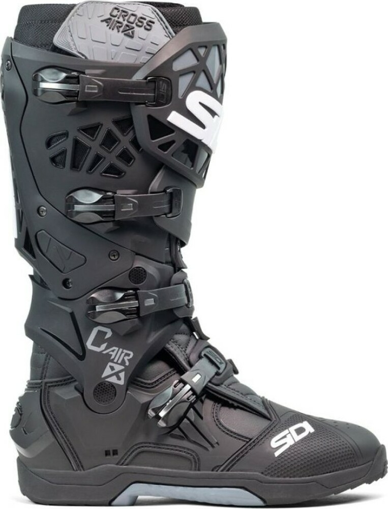 Sidi Crossair X oferă tot sprijinul, controlul și protecția de care ai nevoie, fără greutatea suplimentară. Cizmele Crossair X livrează un nivel remarcabil de siguranță, cu protecții de impact de înaltă densitate care acoperă întreaga cizmă într-o structură ușoară și flexibilă, concepută pentru performanță maximă. Talpa, realizată din compusul Materiis®, este dezvoltată pentru control și durabilitate la nivel de campionat Supercross: rezultatul este o aderență totală fără sfârșit, pentru a aborda orice circuit. În interior, exoscheletul din fibră de sticlă oferă suport în timpul aterizării după sărituri, iar sistemul anti-hiper-flexie în 3 puncte protejează împotriva mișcărilor periculoase.