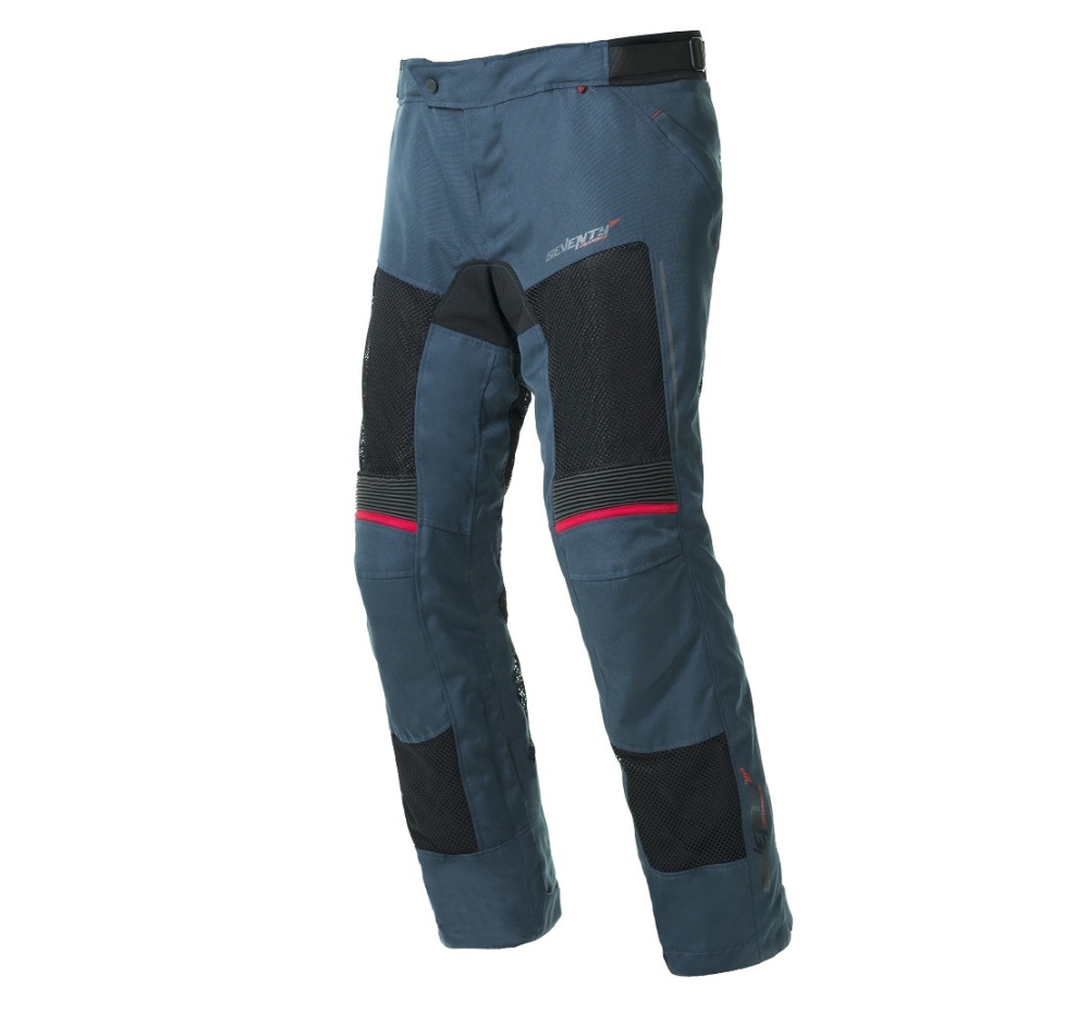 Pantaloni moto Touring unisex Seventy vara model SD-PT22 culoare: albastru Descriere: • culoare: albastru; • pantaloni vara; • membrana waterproof & windproof detasabila (rezistentala apa: +15000 mm H2O); • pantaloni foarte ventilati, usori si confortabili. Caracteristici: • pantalonii sunt fabricati din poliester 600D, avans suprafete mari perforate, pentru ventilare optima; • waterproof & windproof; • materiale exterioare cu rezistenta ridicata; • protectii omologate la genunchi (level 1 - EN1621-1: 2012), omologate si detasabile; • interior detasabil si rezistent la apa (waterproof); • pantaloni ventilati in fata si in spate; • benzi reflectorizante pentru o vizibilitate corespunzatoare; • interior impermeabil si cu protectie termica detasabila; • ajustari talie, genunchi si glezne. Compozitie: • exterior pantaloni: 100% nylon; • interior pantaloni: 100% nylon.
